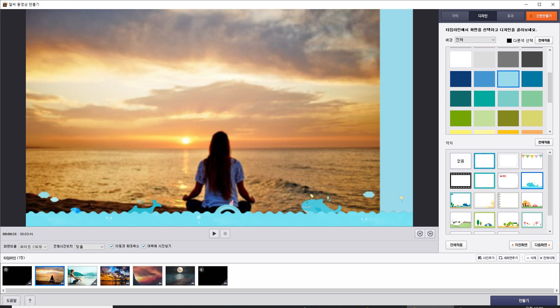 원하는 배경과 액자를 사용자의 마음에 들게 선택을 해줍니다.