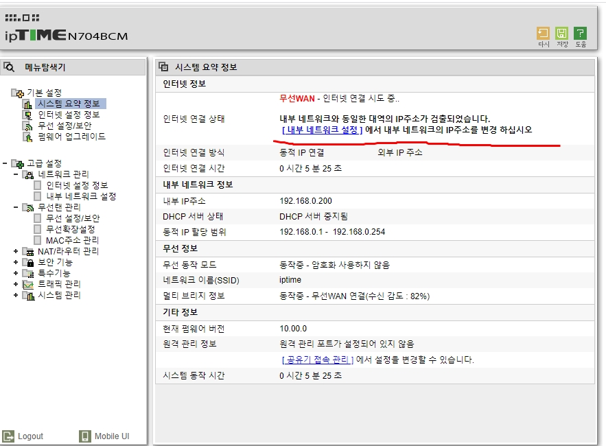 iptime 무선 wan 설정하기