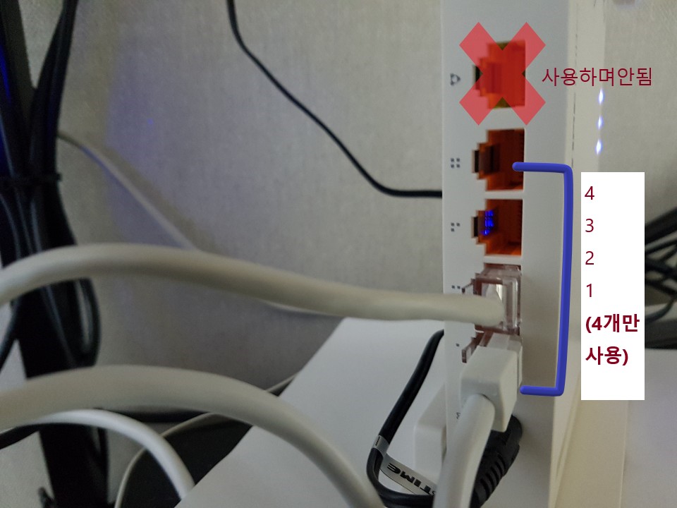 메인 wan포트는 사용하지 말고 1,2,3,4번 포트에 컴퓨터랑 연결해서 사용을 하면은 됩니다.